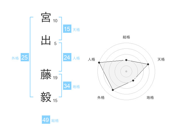 宮出 藤毅さんを姓名の画数から五運を鑑定