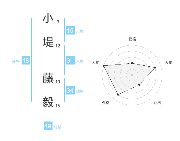 小堤 藤毅さんの総格は49画の2点!