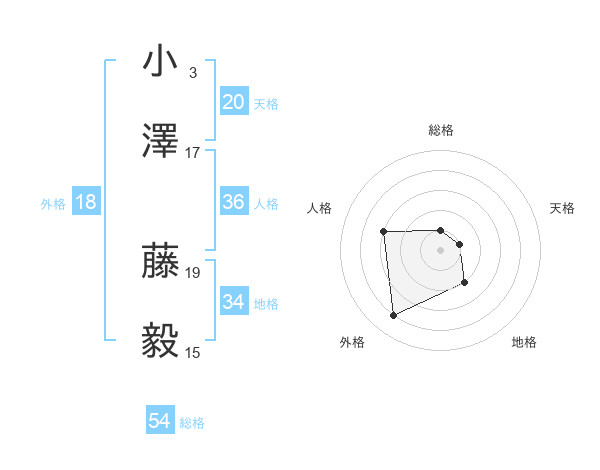 小澤 藤毅さんの天格は20画の1点!