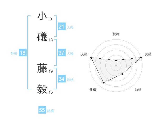 小礒 藤毅さんの天格は21画の5点!