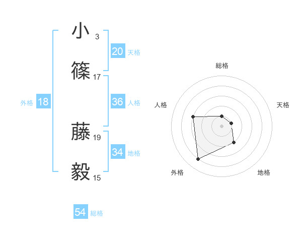 小篠 藤毅さんの天格は20画の1点!