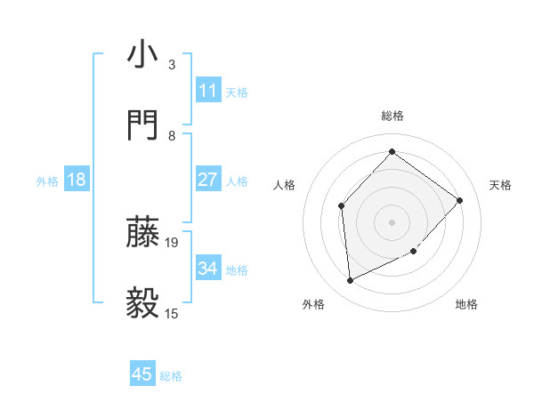 小門 藤毅さんを姓名の画数から五運を鑑定