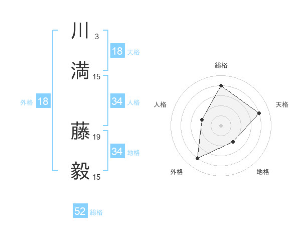 川満 藤毅さんの総格は52画の4点!