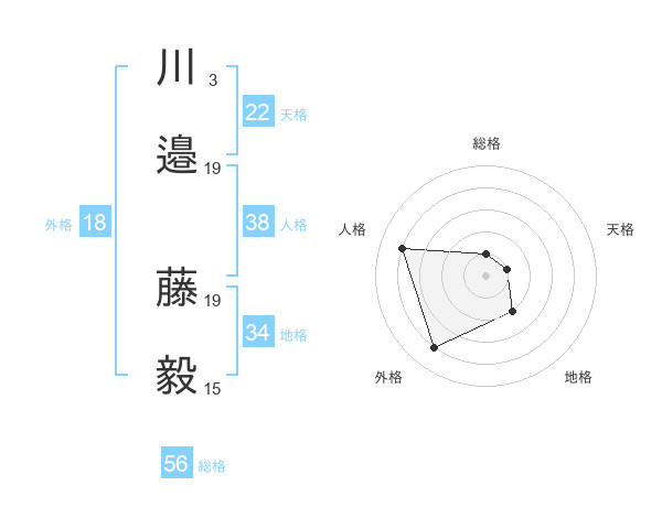 川邉 藤毅さんの天格は22画の1点!