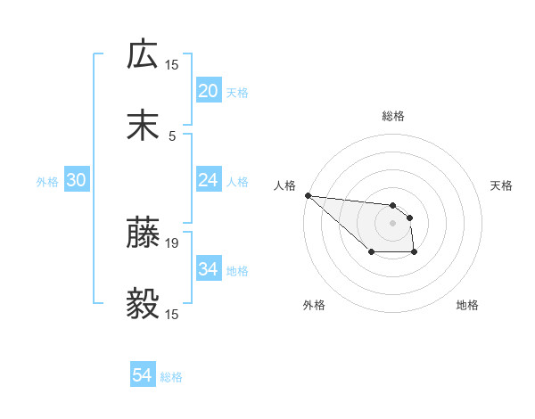 広末 藤毅さんの総格は54画の1点!
