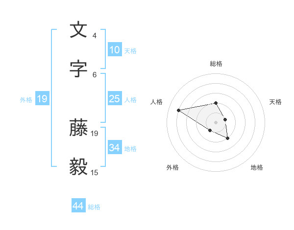 文字 藤毅さんの総格は44画の2点!