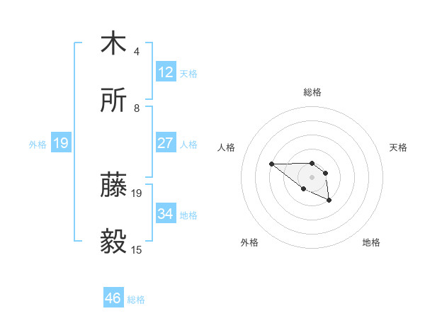 木所 藤毅さんの総格は46画の1点!