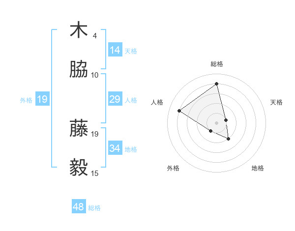 木脇 藤毅さんの総格は48画の4点!
