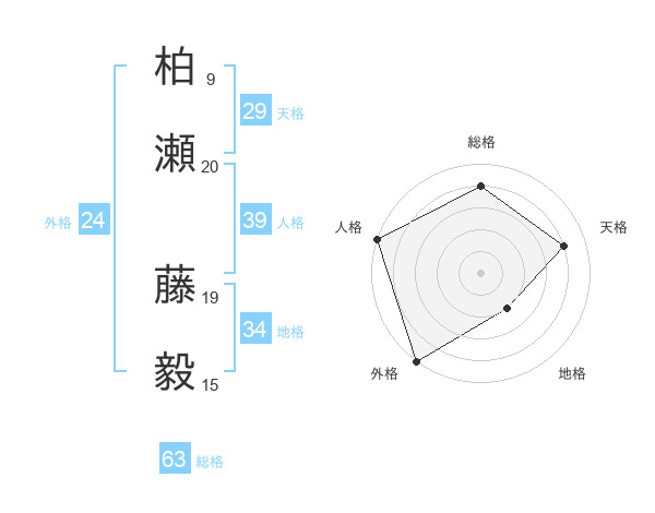 柏瀬 藤毅さんの総格は63画の4点!