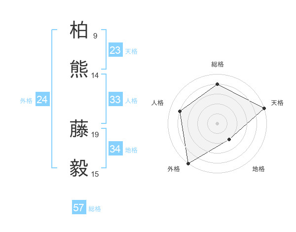 柏熊 藤毅さんの総格は57画の4点!