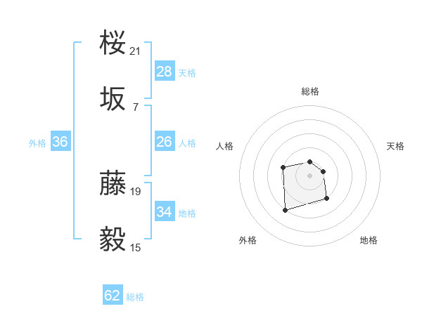桜坂 藤毅さんを姓名の画数から五運を鑑定