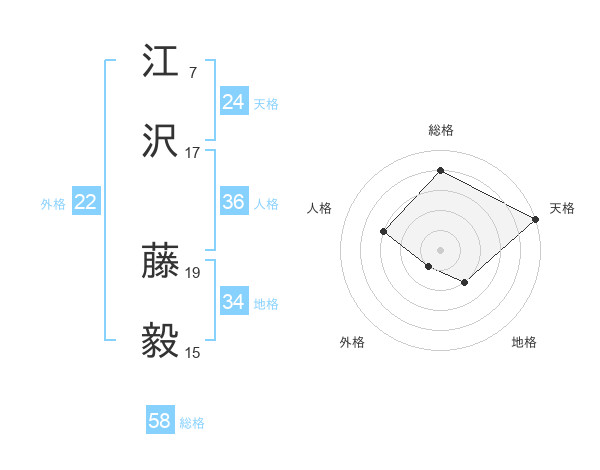 江沢 藤毅さんの総格は58画の4点!