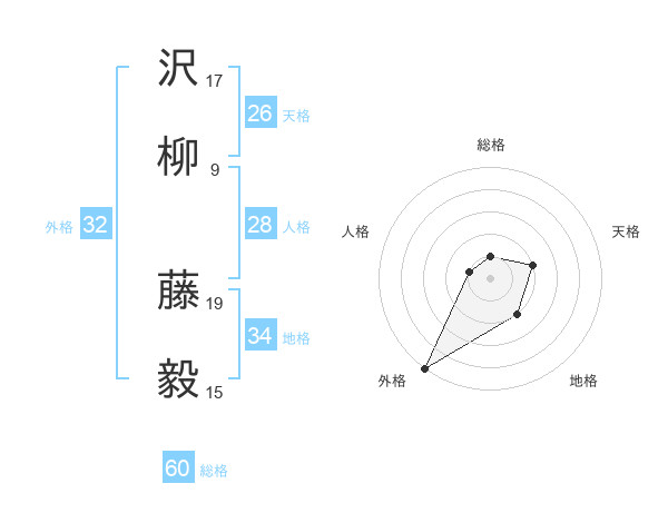 沢柳 藤毅さんの総格は60画の1点!