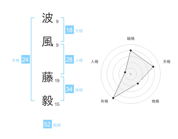 波風 藤毅さんの総格は52画の4点!