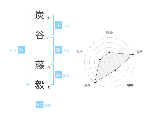 炭谷 藤毅さんの総格は50画の2点!