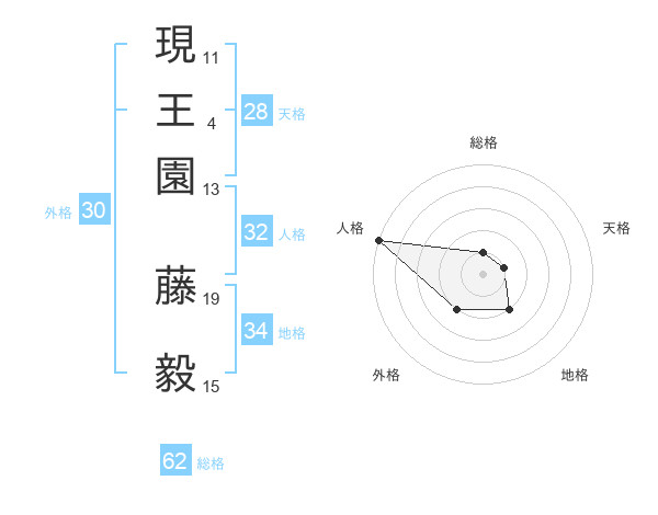 現王園 藤毅さんを姓名の画数から五運を鑑定