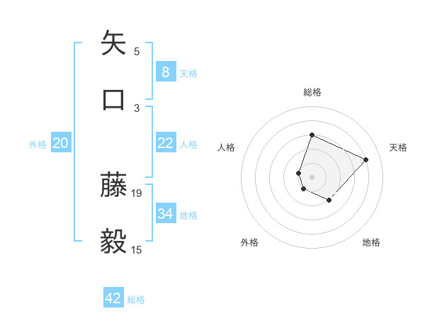 矢口 藤毅さんの天格は8画の4点!