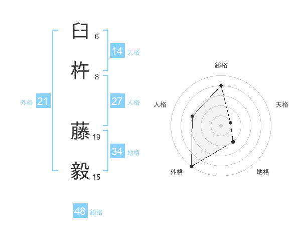 臼杵 藤毅さんを姓名の画数から五運を鑑定