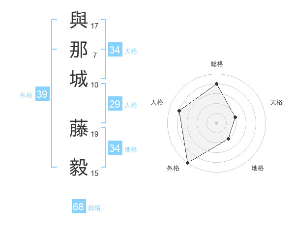 與那城 藤毅さんの外格は39画の5点!