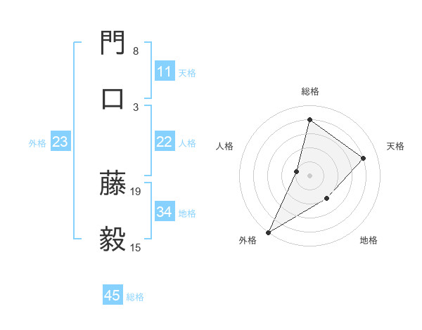 門口 藤毅さんの総格は45画の4点!