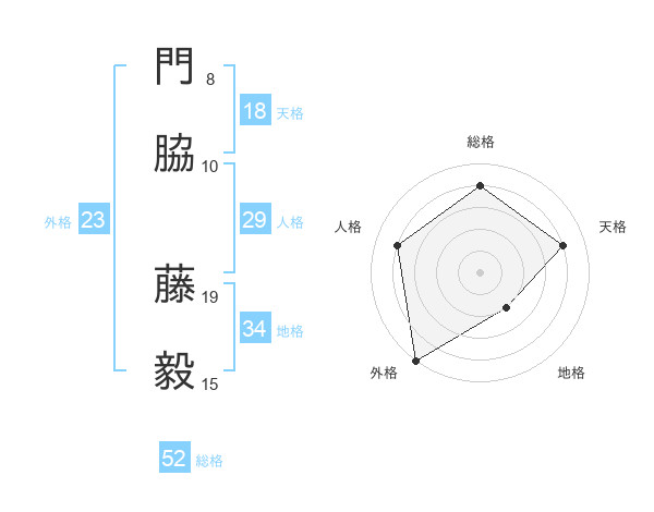 門脇 藤毅さんを姓名の画数から五運を鑑定