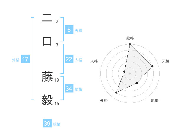 二口 藤毅さんの総格は39画の5点!