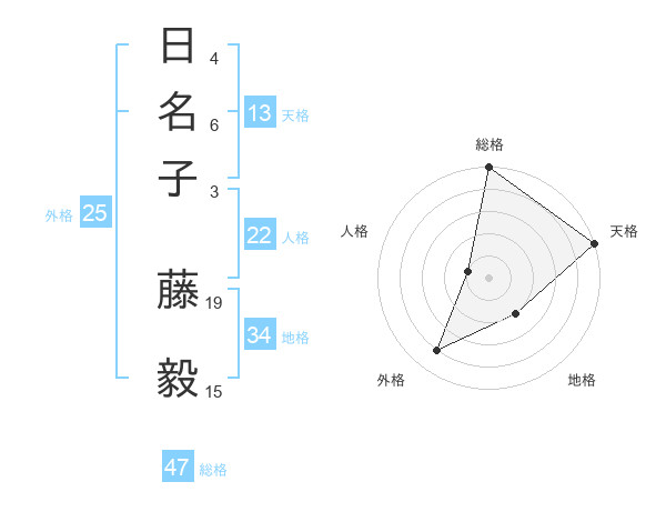 日名子 藤毅さんを姓名の画数から五運を鑑定
