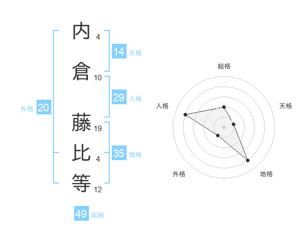 内倉 藤比等さんの総格は49画の2点!