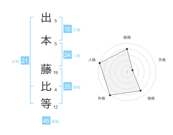 出本 藤比等さんの外格は21画の5点!
