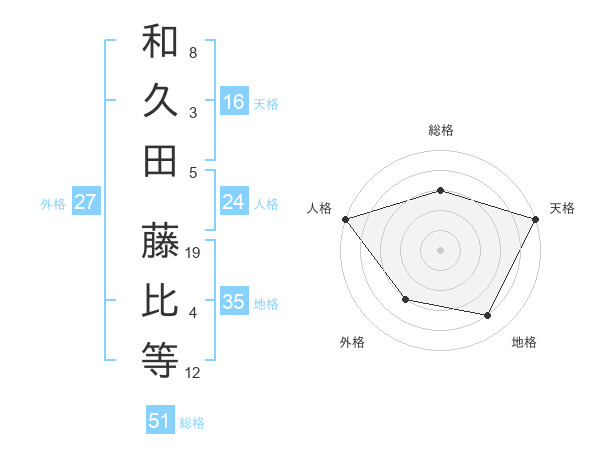 和久田 藤比等さんを姓名の画数から五運を鑑定