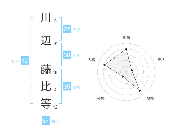 川辺 藤比等さんを姓名の画数から五運を鑑定