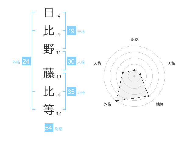 日比野 藤比等さんの外格は24画の5点!