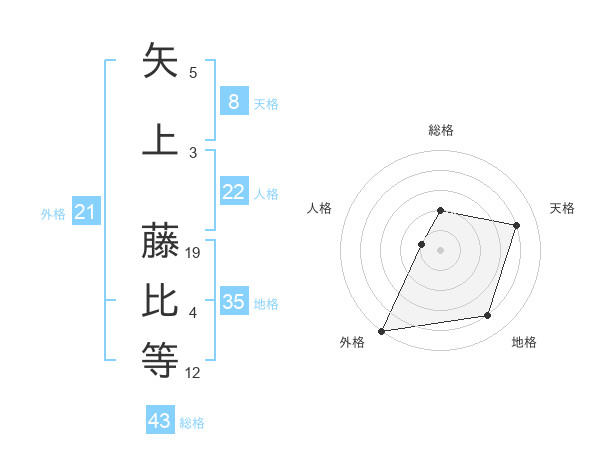 矢上 藤比等さんを姓名の画数から五運を鑑定