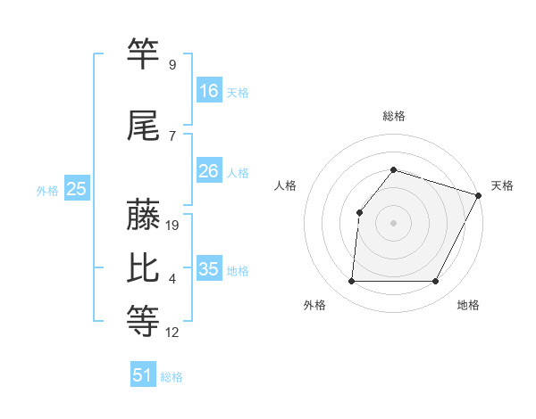 竿尾 藤比等さんを姓名の画数から五運を鑑定