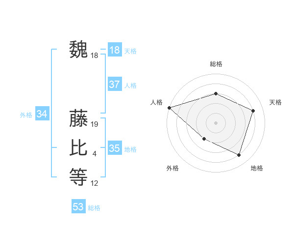 魏 藤比等さんを姓名の画数から五運を鑑定