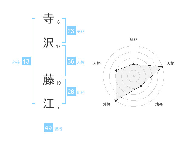 寺沢 藤江さんの外格は13画の5点!