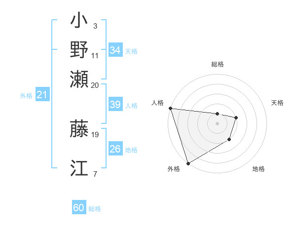 小野瀬 藤江さんを姓名の画数から五運を鑑定
