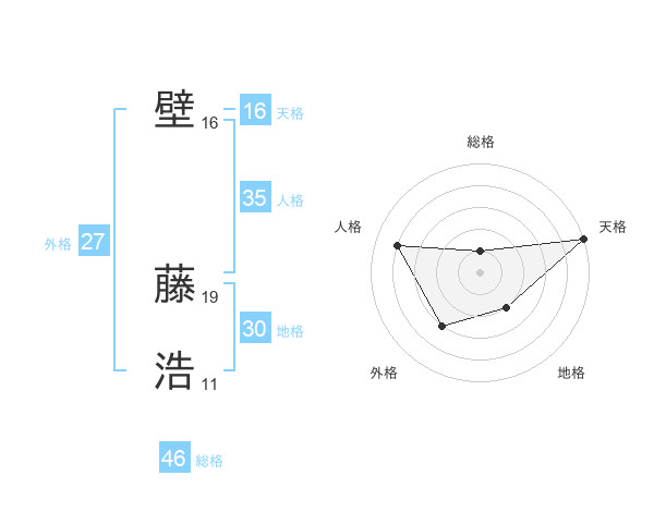 壁 藤浩さんを姓名の画数から五運を鑑定
