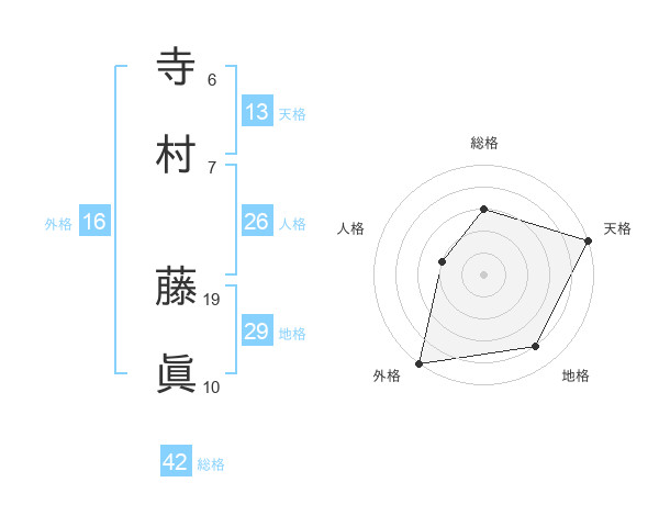寺村 藤眞さんを姓名の画数から五運を鑑定