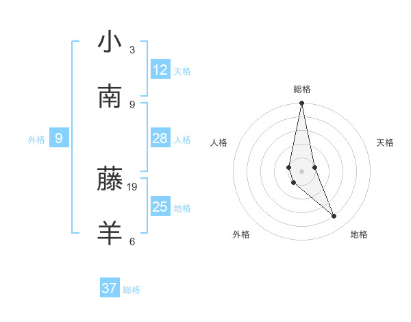 小南 藤羊さんを姓名の画数から五運を鑑定