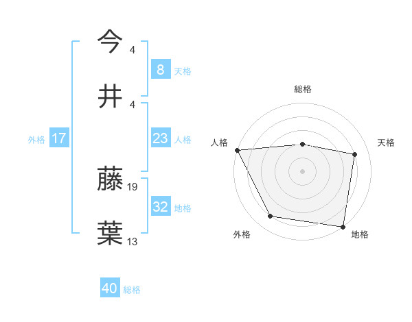 今井 藤葉さんを姓名の画数から五運を鑑定