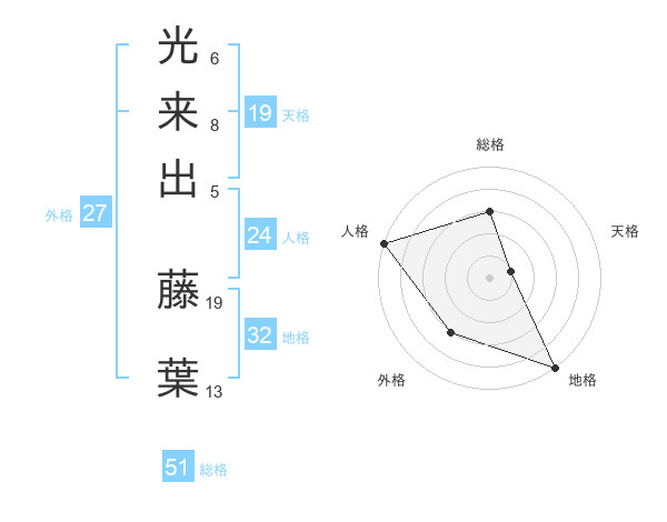 光来出 藤葉さんの総格は51画の3点!
