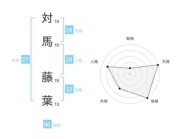対馬 藤葉さんを姓名の画数から五運を鑑定