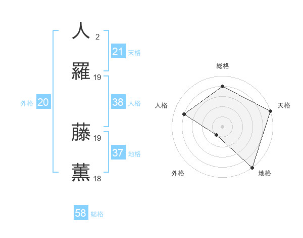 人羅 藤薫さんの天格は21画の5点!