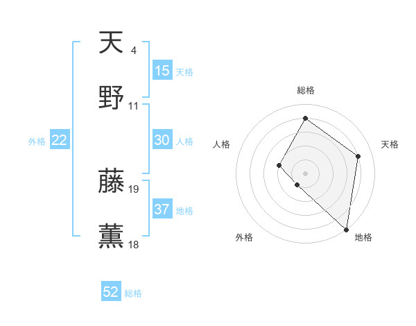 天野 藤薫さんの総格は52画の4点!