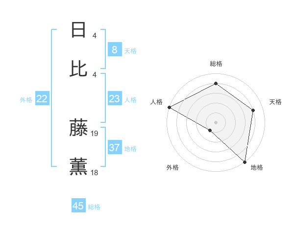日比 藤薫さんを姓名の画数から五運を鑑定