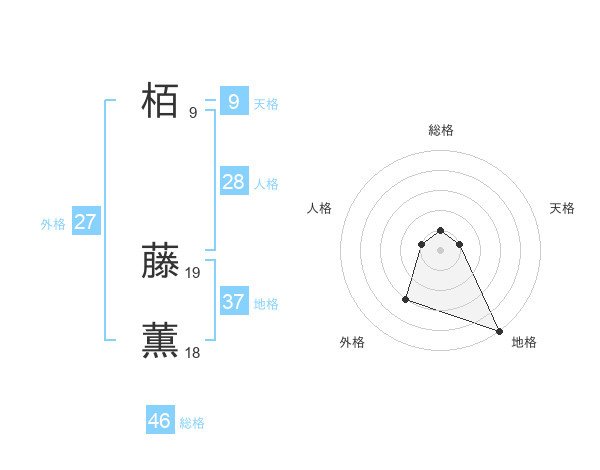 栢 藤薫さんの総格は46画の1点!