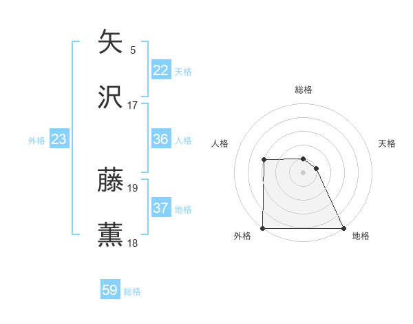 矢沢 藤薫さんの天格は22画の1点!