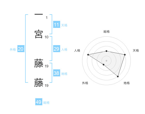 一宮 藤藤さんを姓名の画数から五運を鑑定