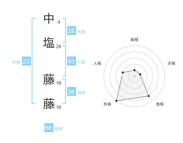 中塩 藤藤さんを姓名の画数から五運を鑑定